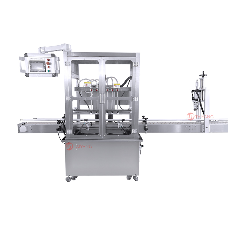 Бұл Тайянның сұйықтығын сұйықтықтандыру және жабысатын машина негізінен, косметика, тамақ өнеркәсібі, сусабын, лосьон, сұйықтық, тазартқыш сұйықтық және т.б. сияқты жоғары көбіктенетін сусыздандырғыштар үшін жарамды. Тайянның алты басы сұйықтықты салындысы және жабысатын машина - бұл су негізіндегі өнімдерді өндіруге арналған жабдықтарды таңдау. Оны бөтелке желісіндегі жабысқақ машинамен және таңбалау машинасымен біріктіруге болады. Тайяндық техниканың толық функциялары бар және интеллектуалды бақылаудың артықшылығы бар.
